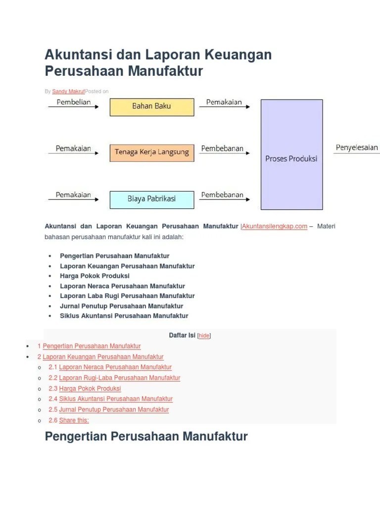 Setiap perusahaan membutuhkan laporan keuangan untuk kemajuan perusahaan. Sedangkan untuk perusahaan manufaktur, laporan keuangannya lebih . Menurut standar akuntansi keuangan (psak no. Pada dasarnya, laporan keuangan perusahaan manufaktur terdiri dari laporan harga pokok produksi, laporan laba rugi, neraca, dan laporan . Pengertian laporan keuangan perusahaan manufaktur.